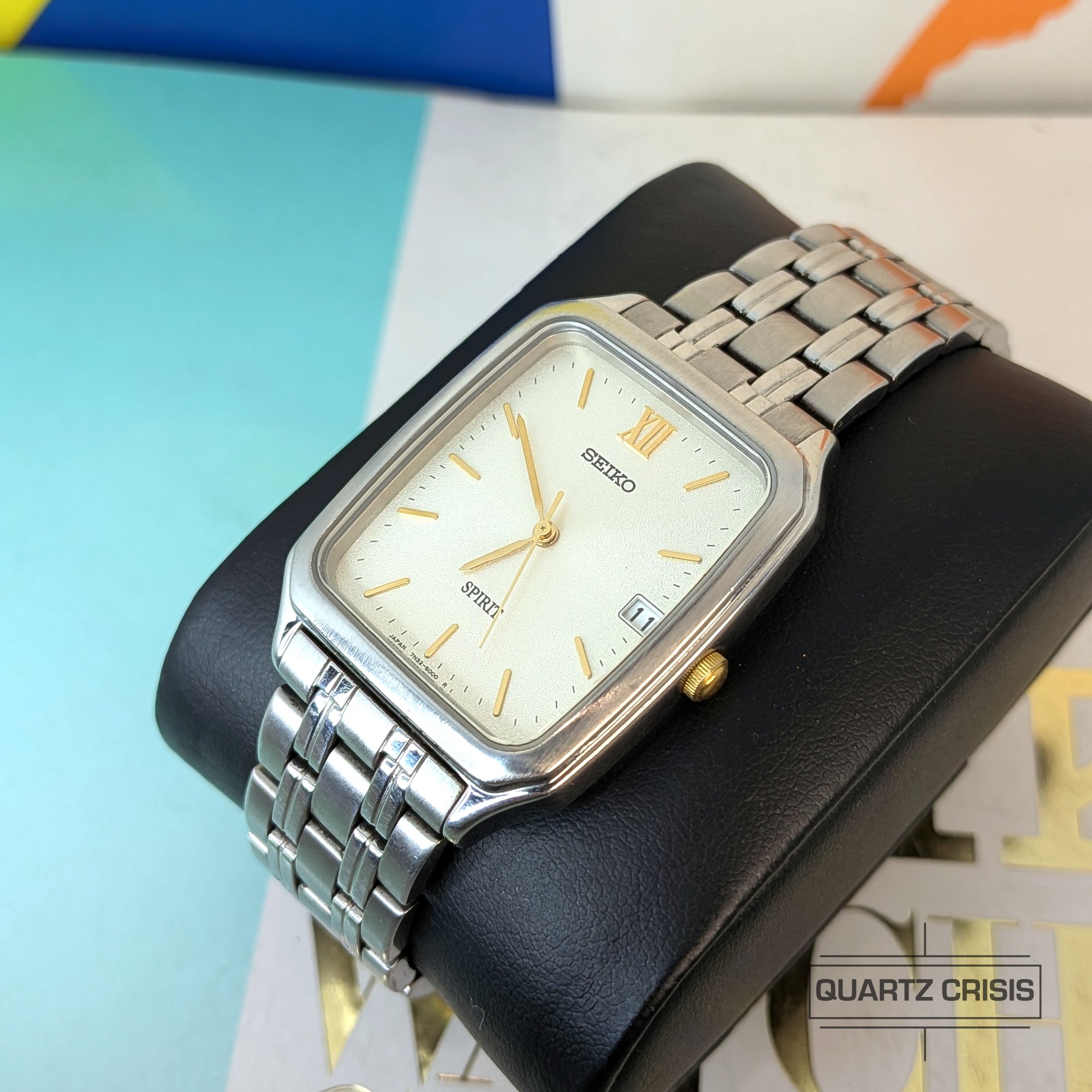 2001 Seiko Spirit Quartz Two-Tone Tank Dress Watch (7N32-5000)