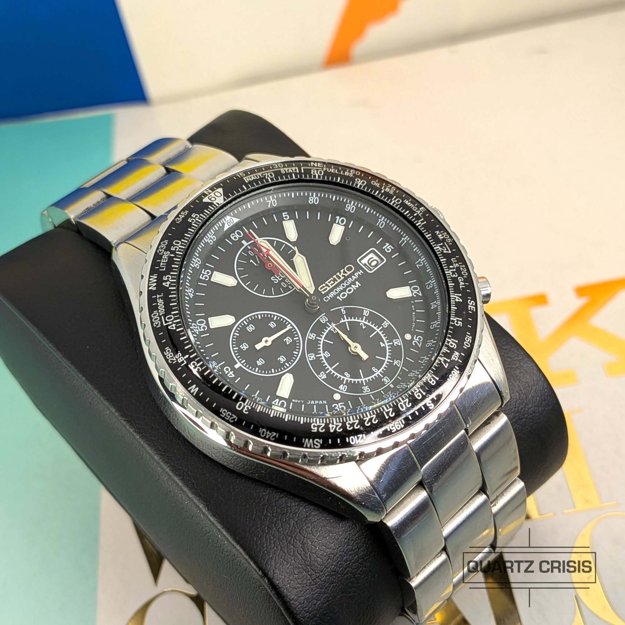 2011 Seiko Flightmaster SND253 Black Quartz Chronograph (7t92-0CF0)