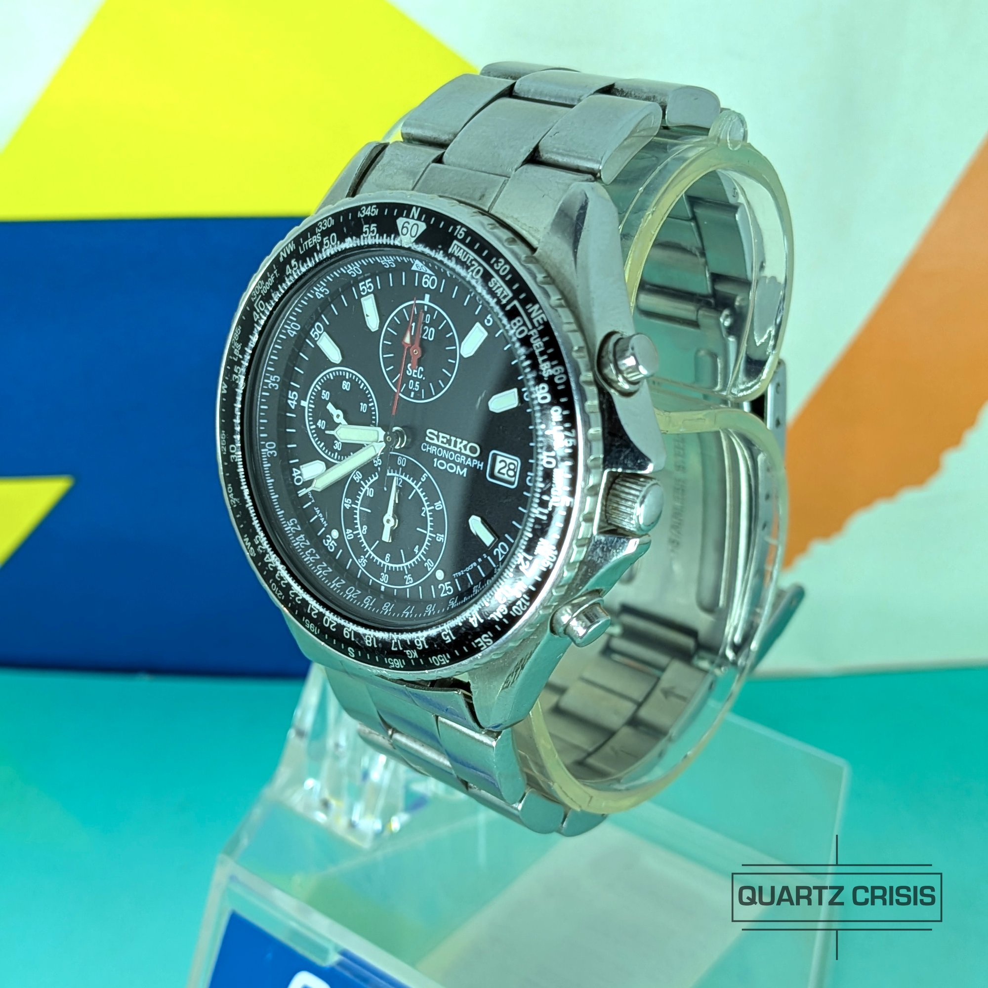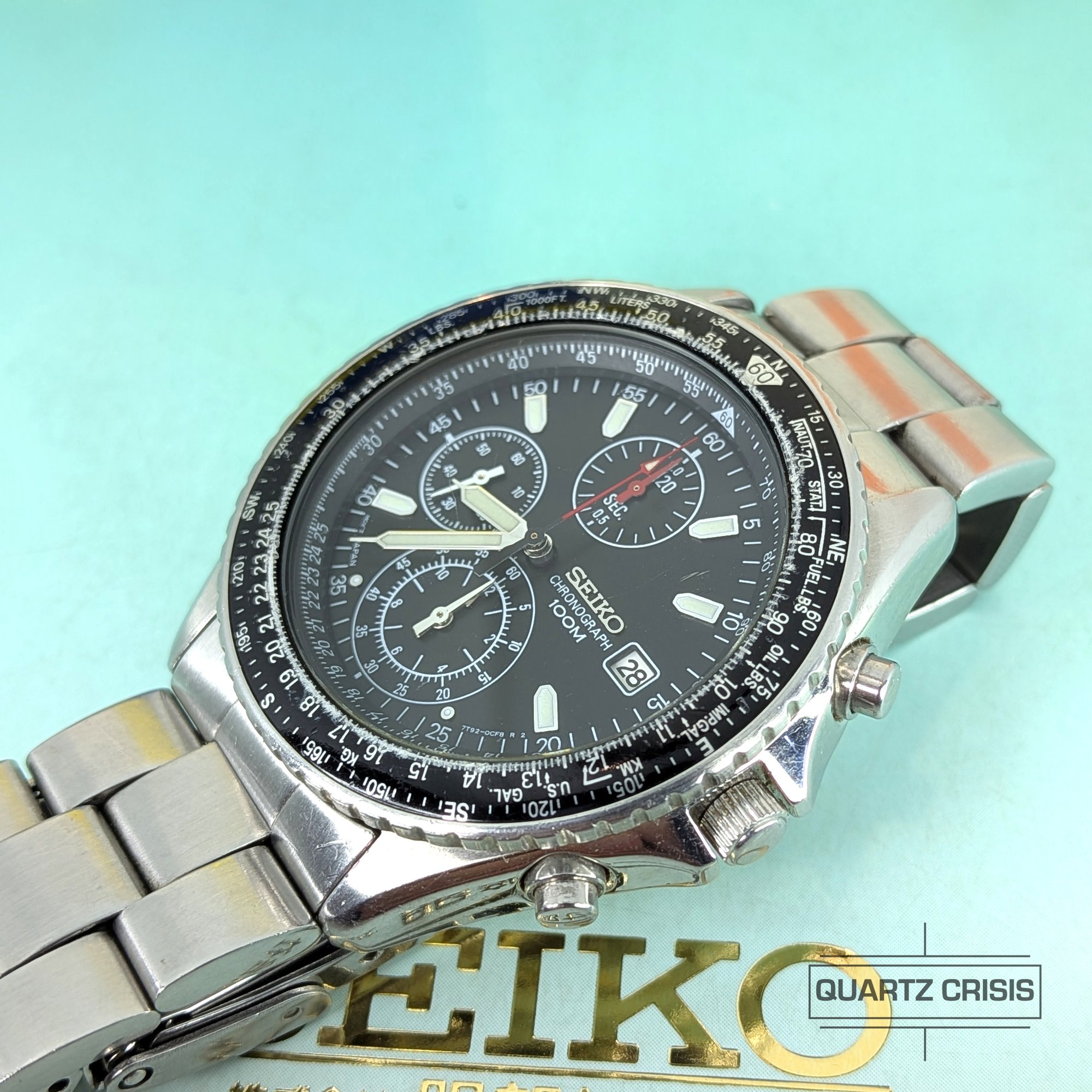 2014 Seiko Flightmaster SND253 Black Pilot's Quartz Chronograph (7t92-0CF0)